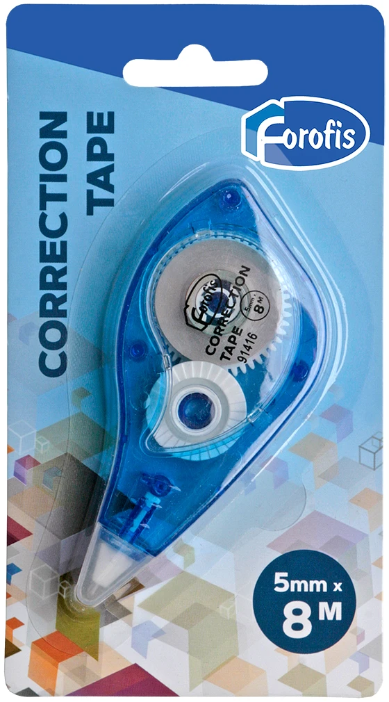 Ταινία διόρθωσης Forofis, εξαιρετικά μεγάλου μήκους, που χρησιμοποιείται για γρήγορες και ακριβείς διορθώσεις. Η ταινία διόρθωσης καλύπτει τέλεια κάθε τύπο μελανιού και μπορεί να χρησιμοποιηθεί σε οποιονδήποτε τύπο χαρτιού. Η διαφανής θήκη επιτρέπει τον έλεγχο του υπολοίπου της ταινίας.