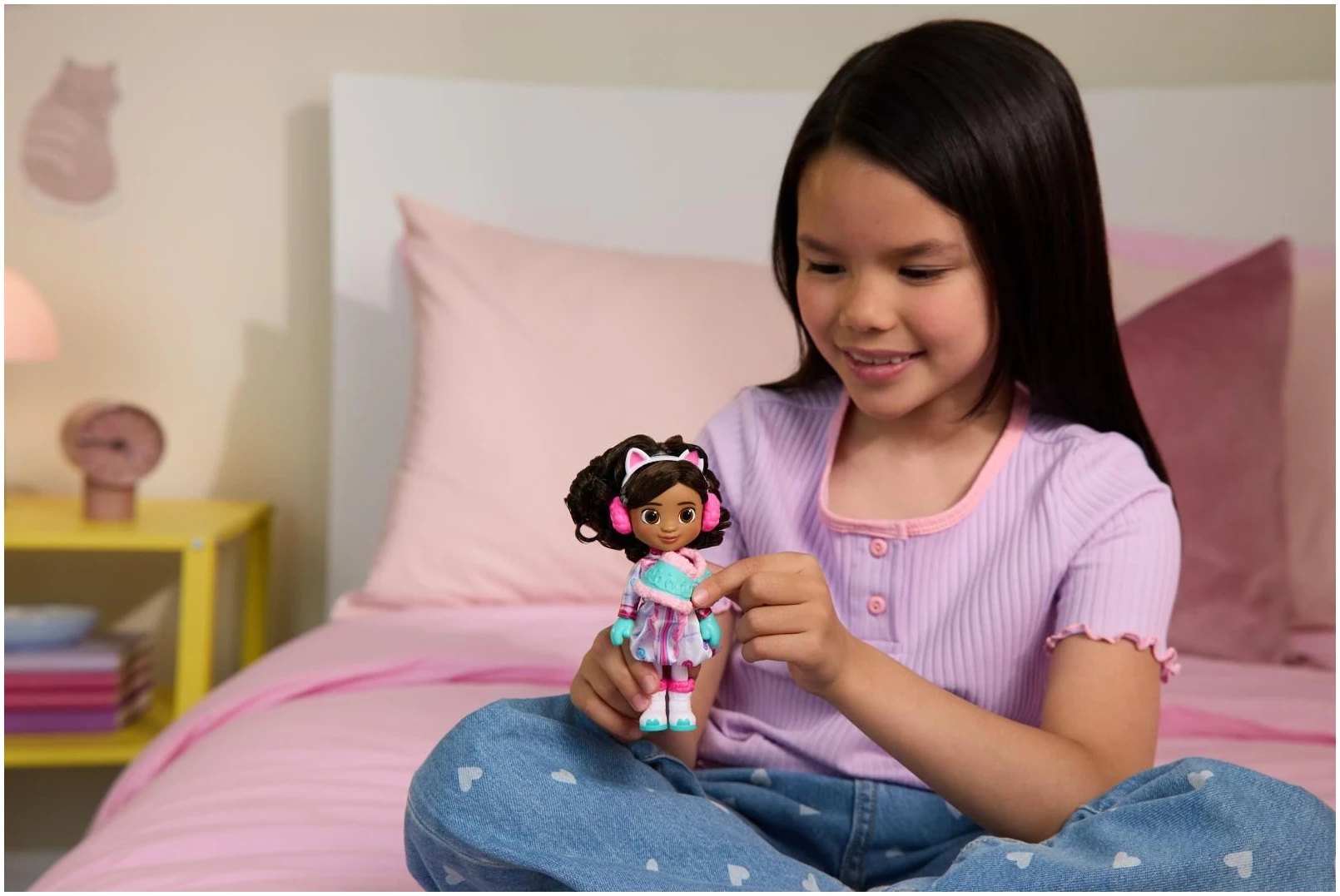 Φέρε στο σπίτι τη μαγεία του Gabby’s Dollhouse: The Movie με την κούκλα Gabby ύψους 15 εκ.! H κούκλα είναι εμπνευσμένη από τον κόσμο της Γκάμπι και φοράει ρούχα με θεματικό σχεδιασμό, όπως παλτό, καπέλα, αξεσουάρ και αφαιρούμενη στέκα με αυτιά γάτας. Με μαλλιά που μπορούν να χτενιστούν και να διακοσμηθούν, οι μικροί φίλοι μπορούν να δημιουργήσουν ατελείωτες εμφανίσεις και ιστορίες.