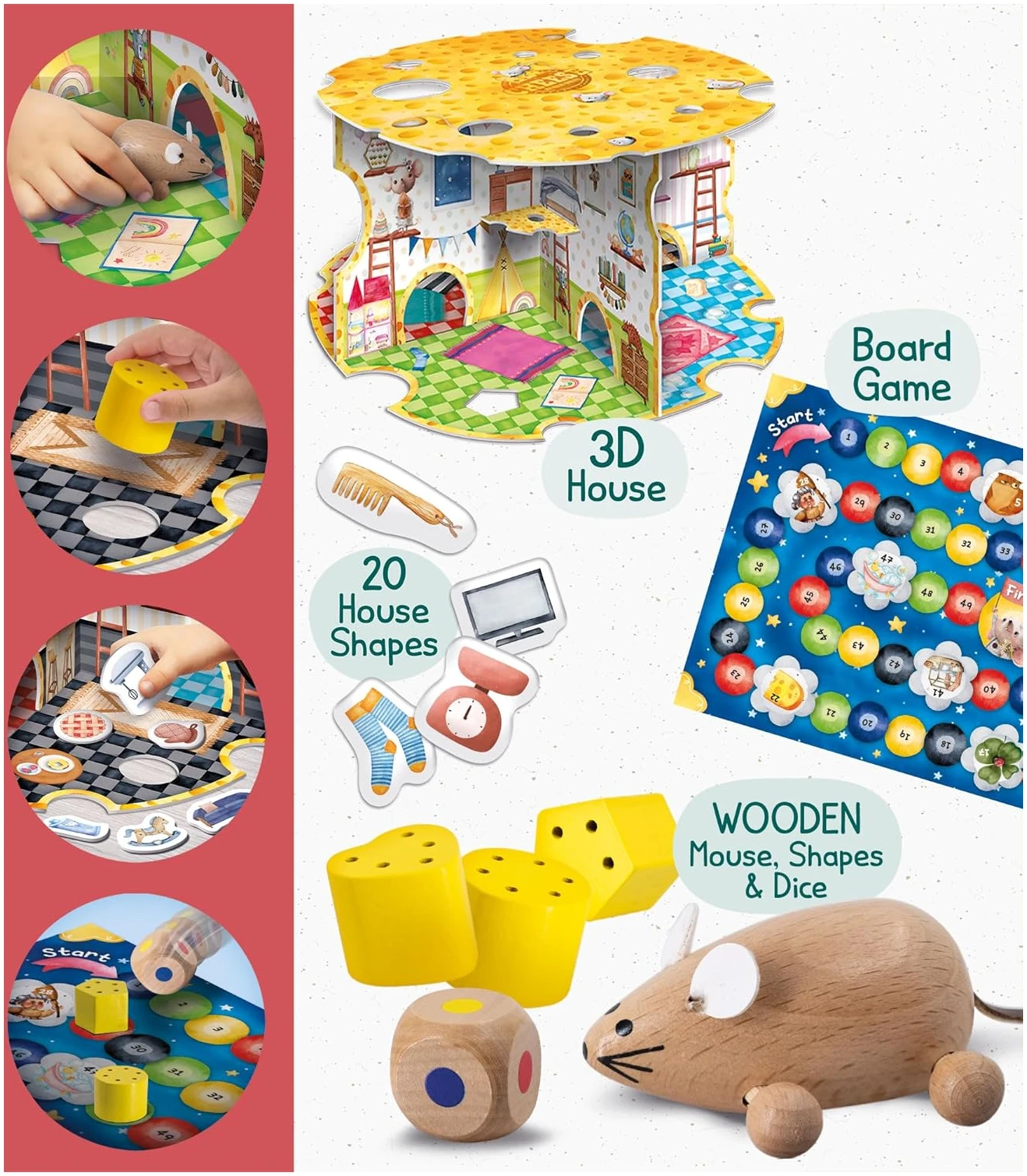 3D ποντικόσπιτο – Ξύλινα καλούπια – Ξύλινο ποντίκι – Ξύλινα ζάρια – σχήματα από χαρτόνι – Παιχνίδι με αριθμούς – Επιτραπέζιο